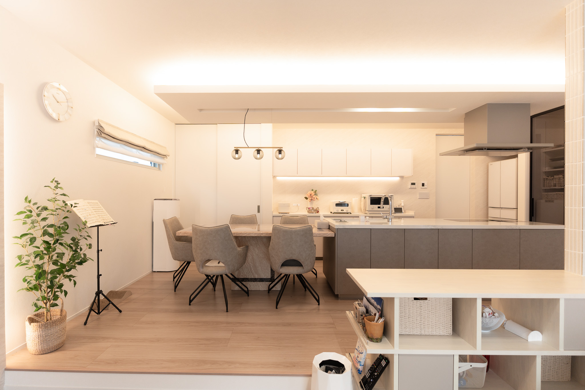 家族の未来を想う優しさと、「好き」を追求するこだわり、弊社のモデルハウス達を参考にしていただき、暮らしの知恵が随所に散りばめられたお住まい。こちらの家は、ご家族の毎日を明るく照らし、たくさんの笑顔と元気を育んでいく家となり、モデルハウスを超えるクオリティーを実現していました。