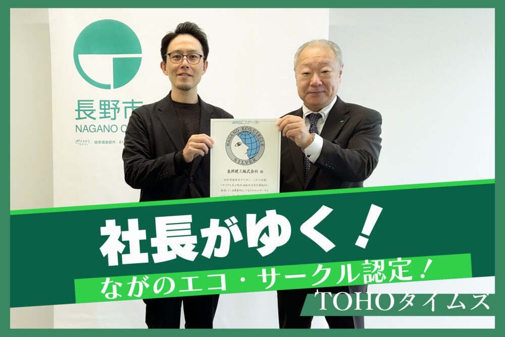 このたび、私たち東邦建工は、長野市が推進する環境配慮等の活動を行う事業所として認められ、「ながのエコ・サークル」の認定を受けました!