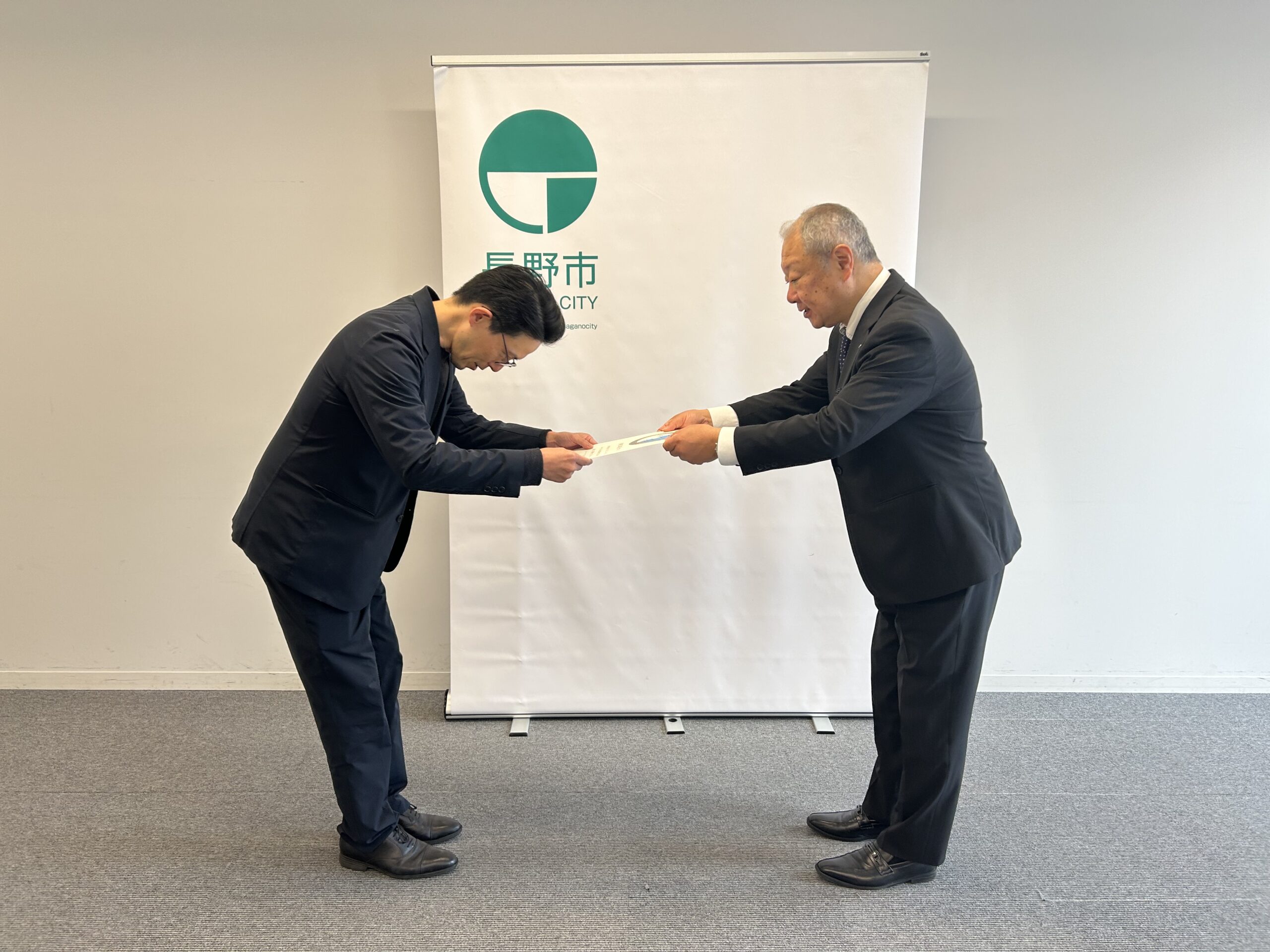 長野市役所で行われた交付式では、社長の増子が認定証を受け取りました。