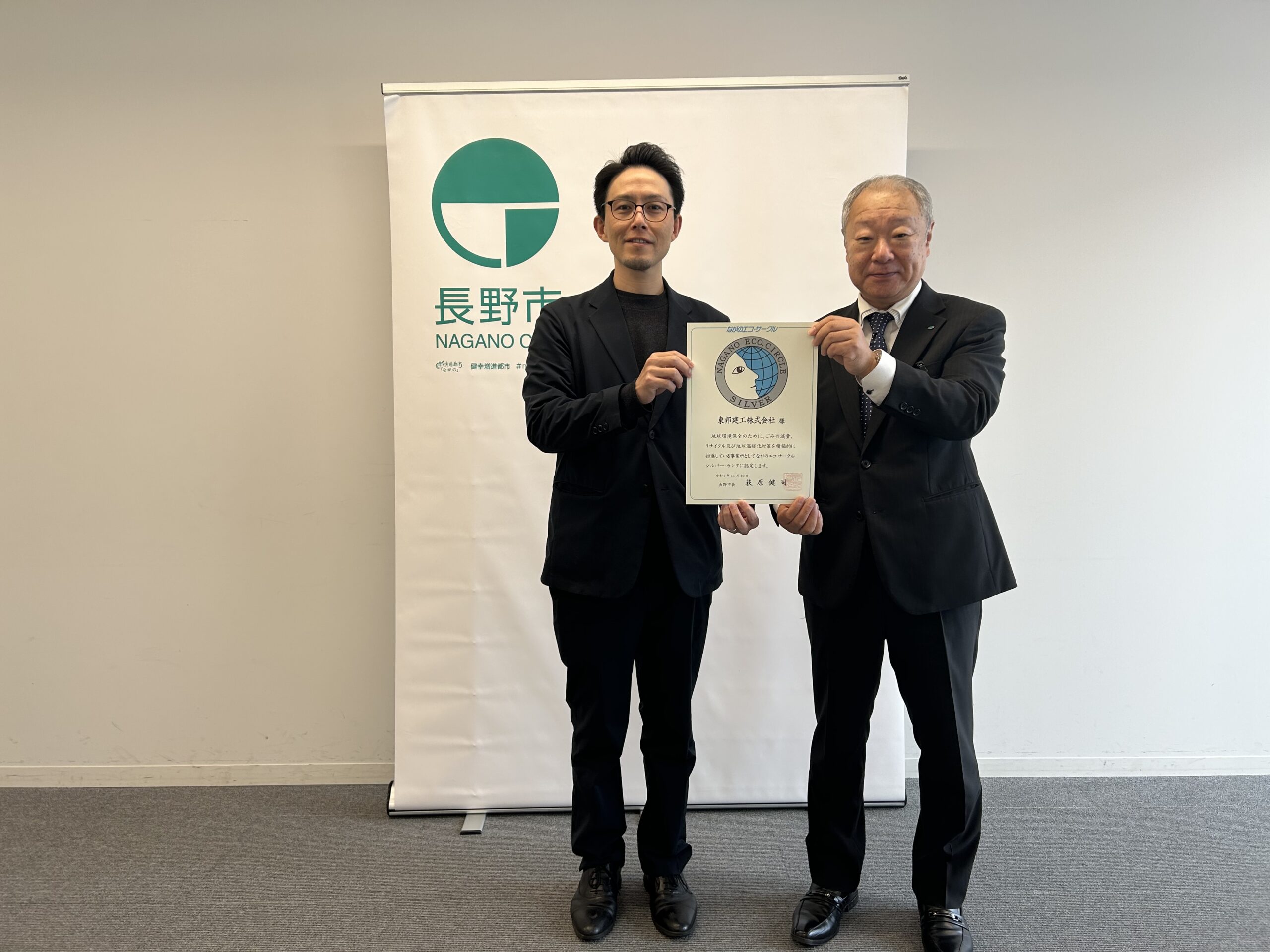 先日、長野市役所にて行われた交付式には、弊社代表取締役社長の増子桂介が出席。長野市より認定証とステッカーを交付いただきました。今回は、その交付式の様子と、私たちが評価された環境への取り組みについてご紹介します。