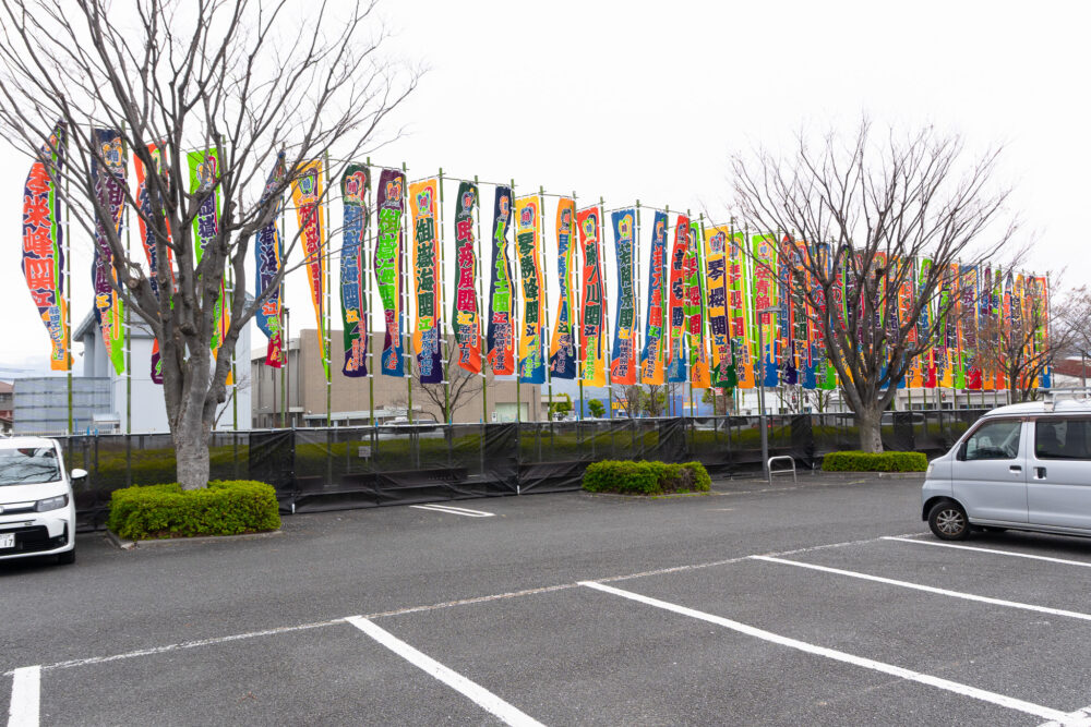 会場の周辺でひときわ目を引く、各力士の四股名が染め抜かれた色鮮やかなのぼり旗。実は今回、私たちがその設営をさせていただきました。