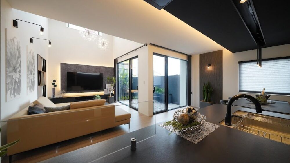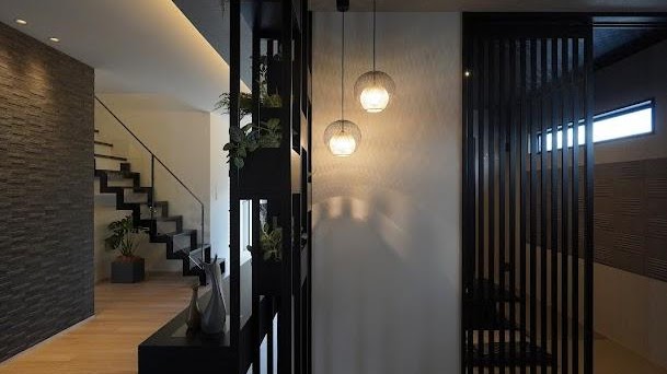 ブラック基調のインテリアを最大限に引き立てるのが、緻密に計算された照明計画です。空間全体を均一に照らすのではなく、ダウンライトや間接照明を効果的に使い分けることで、美しい光と影のコントラストを創出。夜には一層ムーディーで落ち着いた雰囲気に。時間帯によって異なる表情を見せる、ホテルのような空間演出の秘訣がここにあります。