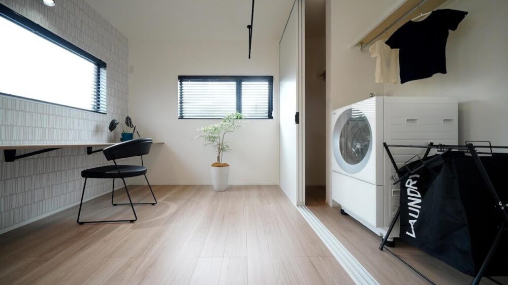 洗濯機や乾燥機など、生活感が出てしまいがちなものを全て扉の中に収めることで、洗練された空間を実現しました。脱衣所にはランドリーシューターを設置。洗濯物をその場で別部屋のランドリースペースへ送れる画期的な動線は必見です。美しさを保ちながら、家事の負担を劇的に軽減するアイデアを、ぜひモデルハウスでご確認ください。