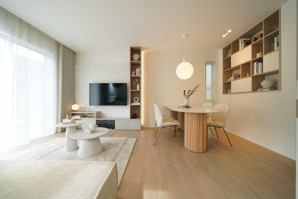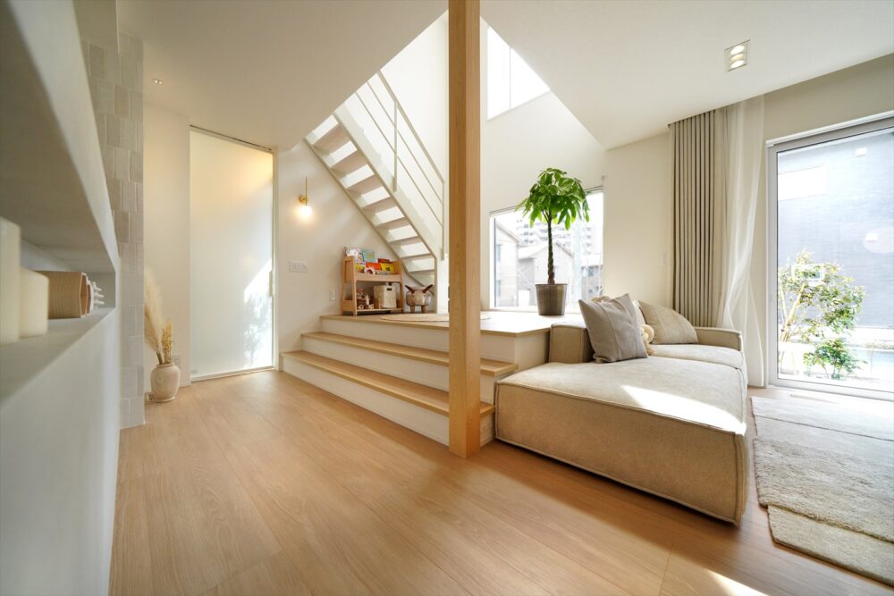 さらに、自然光を豊かに取り込む窓の配置と、空間を明るく照らす照明計画によって、一日を通して明るく心地よい住まいを実現しています。