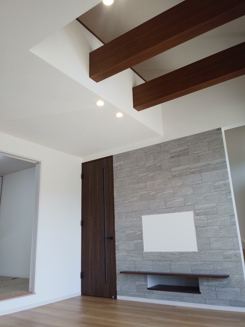 リビングの天井を勾配天井とすることで天井の上に空間を