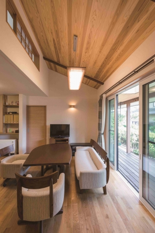 また、機械に頼らず、できるだけ自然の力で快適に暮らせる工夫が多いのもK邸のポイント。電気を点けなくてもリビングに光を注ぐデッキのクリア瓦、リビングからホビールーム、そして外へと空気を導いてくれる窓の配置など、さりげない部分にも細かな配慮が行き届いている。